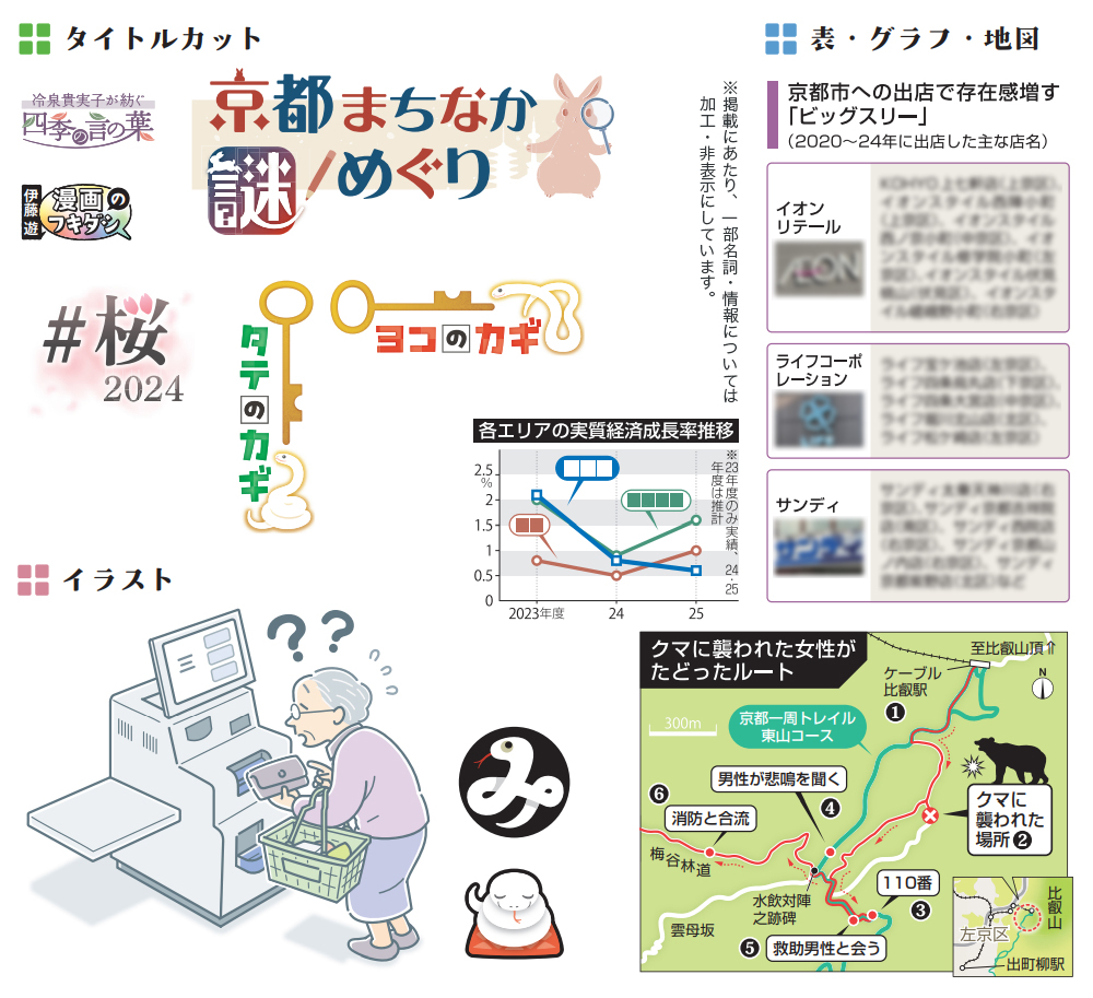 京都の新聞社にて3年間、速報性が求められるグラフィック制作に携わりました。 記事の担当記者やデスクと密接に連携し、制作意図に関する綿密な打ち合わせを実施。 「報道の本質」を正確に理解した上で、複雑な情報(グラフ、地図、イラスト)を 客観的な根拠として視覚化し、記事の読解度と信頼性向上に貢献しました。